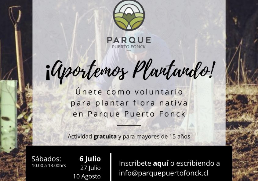 Te invitamos a ser parte del proceso de restauración ecológica de Parque Puerto Fonck participando como voluntario en la plantación de un bosque de Roble Laurel Lingue. Las jornadas de plantación con voluntarios se llevaran a cabo los días sábado 6 de julio y sábado 27 de julio entre las 10.00 y las 13:00 horas…
